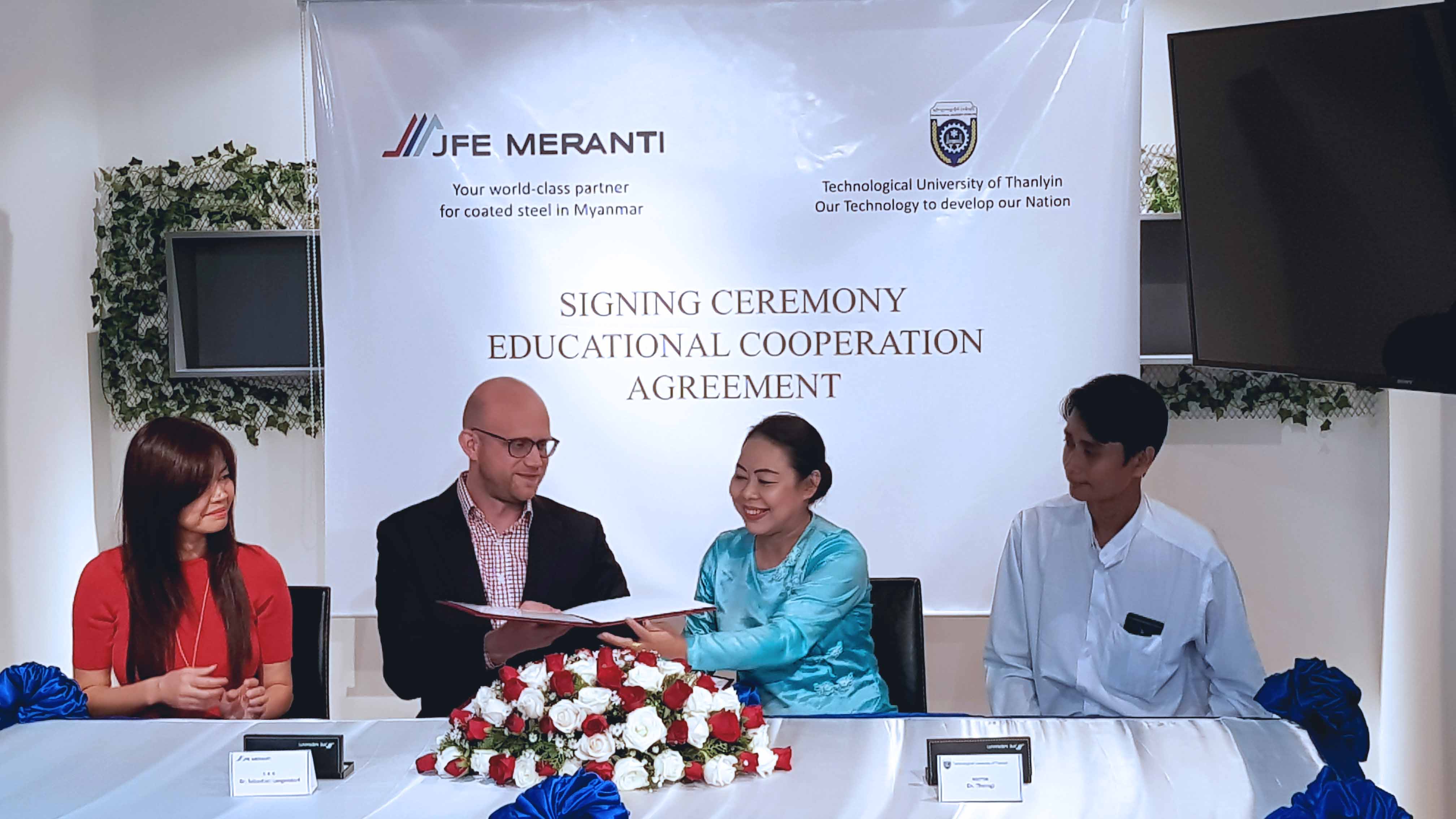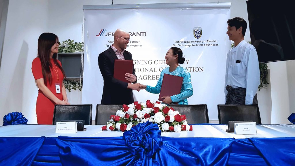 The Educational Cooperation Agreement (ECA) between JFE Meranti Myanmar and Technological University of Thanlyin (TTU) has officially been confirmed with the signing ceremony on the 8th of February, 2018.